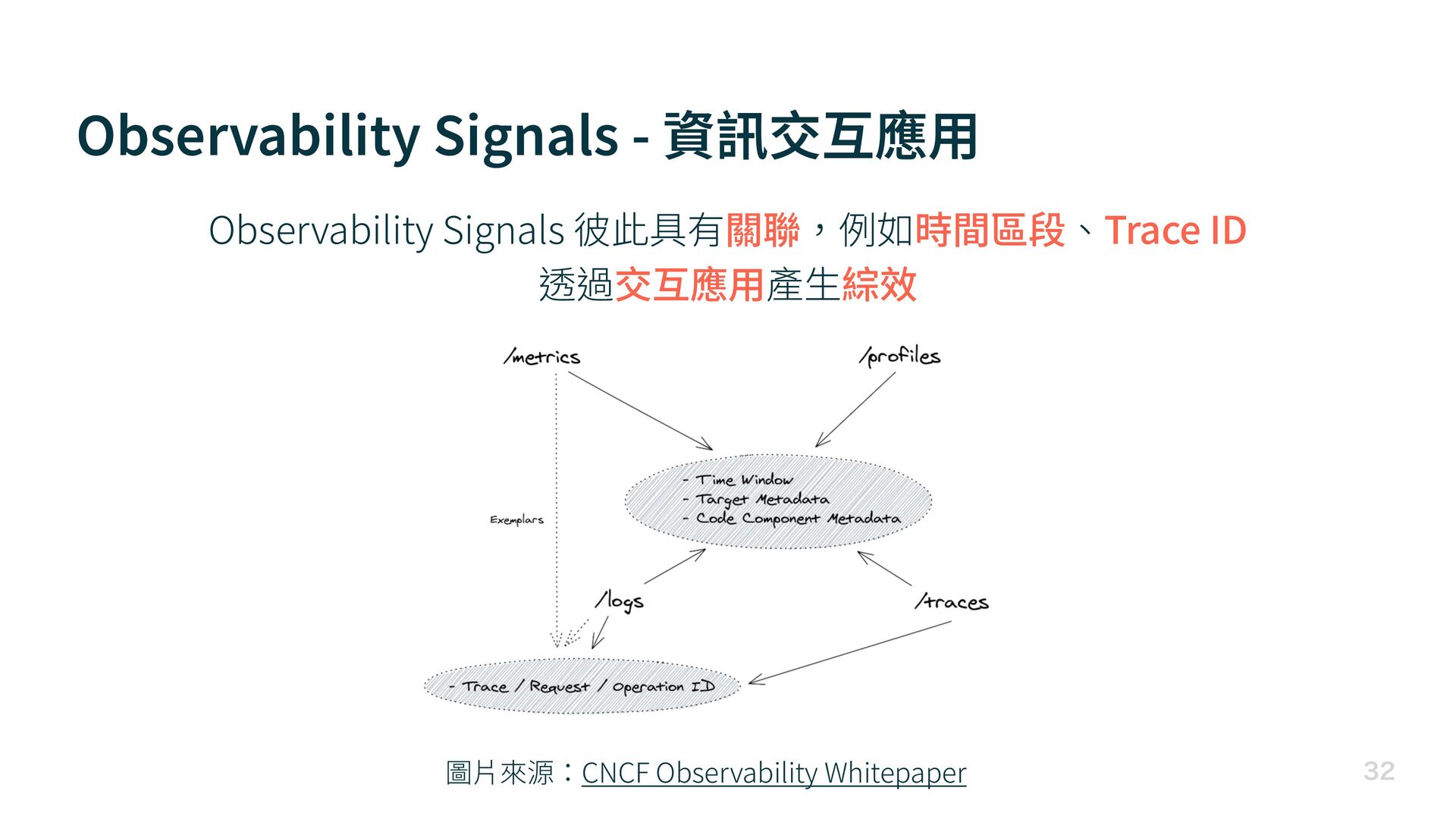 Observability Signals - 資訊交互應 用 圖 片 來源:CNCF Observability