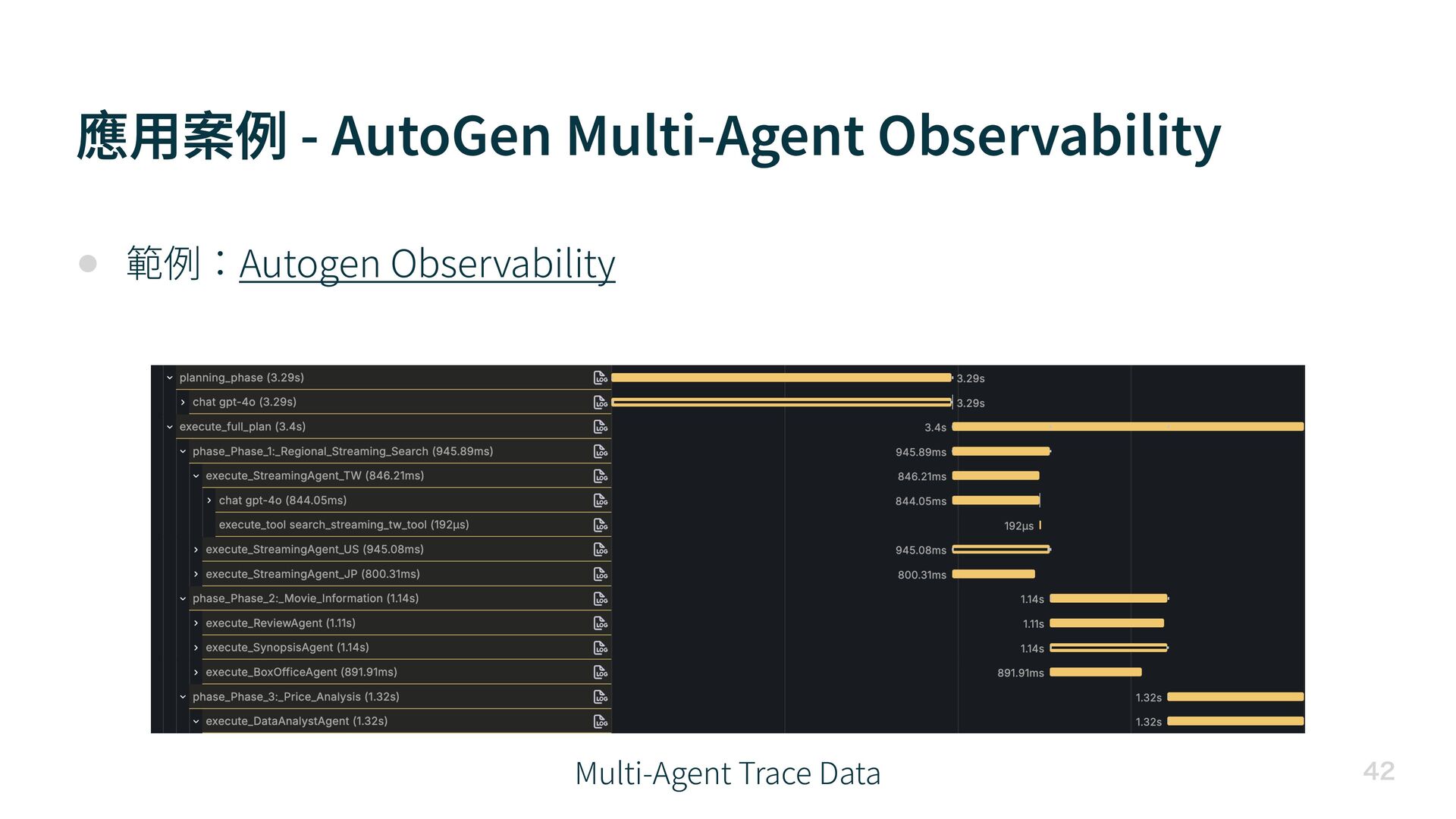 應 用 案例 - AutoGen Multi-Agent Observability • 範例:Autogen