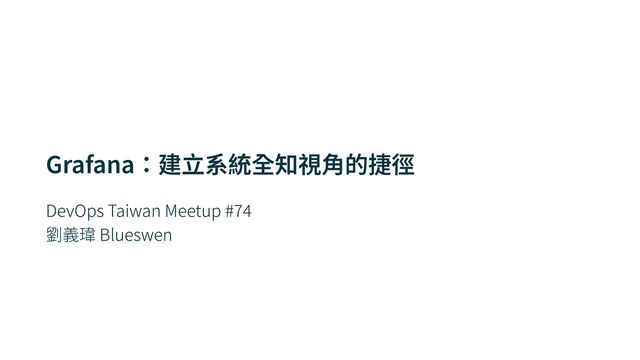 DevOps Taiwan Meetup #74 - Grafana:建立系統全知視角的捷徑 本次分享將介紹如何快速上手 Grafana,並透過 Drilldown 與 MCP 讓你在沒有相關工具背景下也能縱覽系統全局。