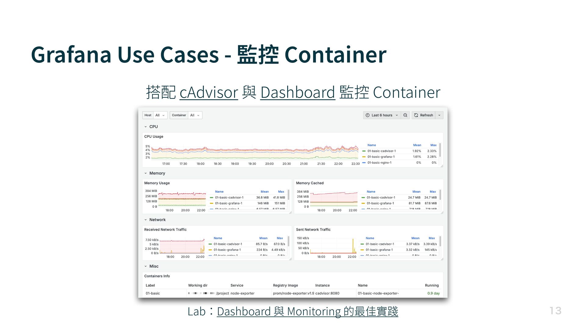 8. Grafana Use Cases - 監控 Container  Lab:Dashboard 與 Monitoring