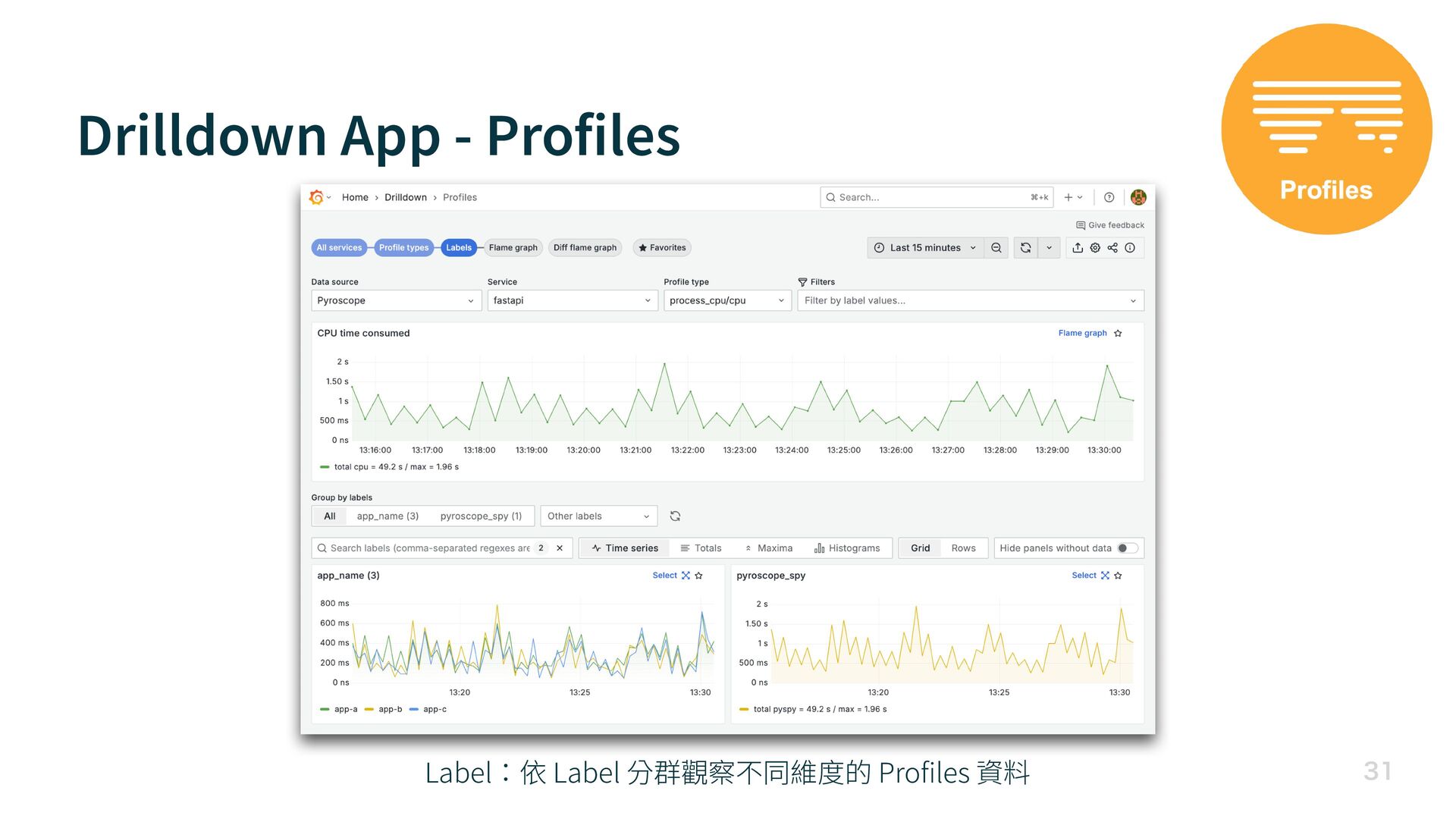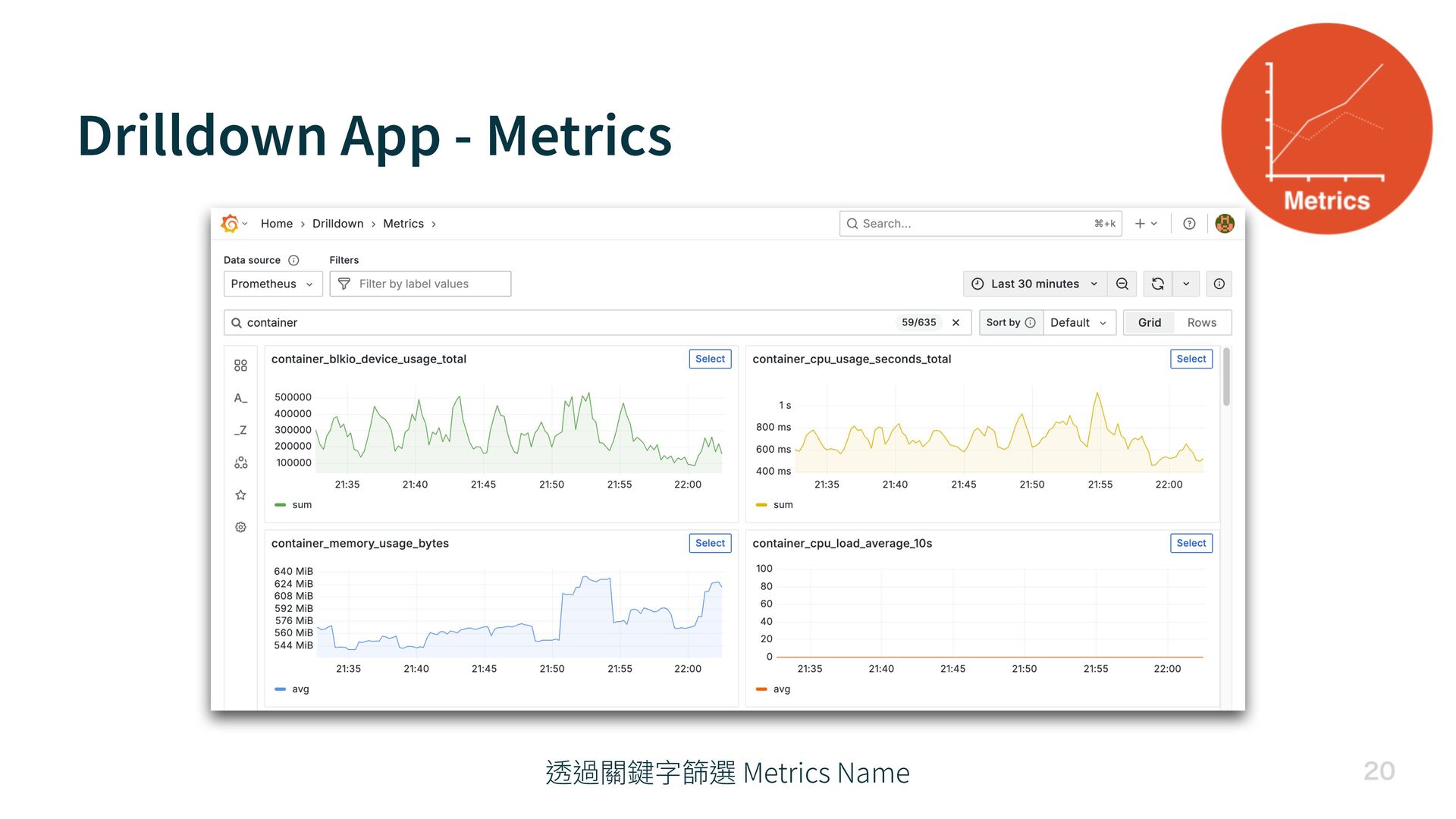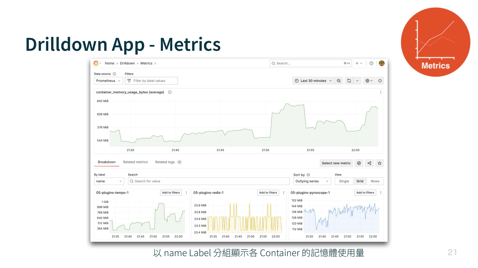 13. Drilldown App - Metrics  以 name Label 分組顯 示