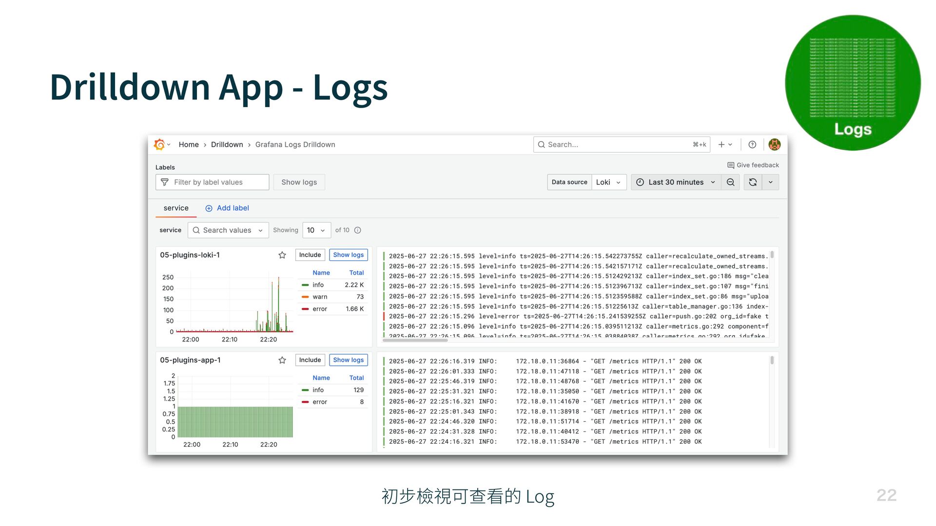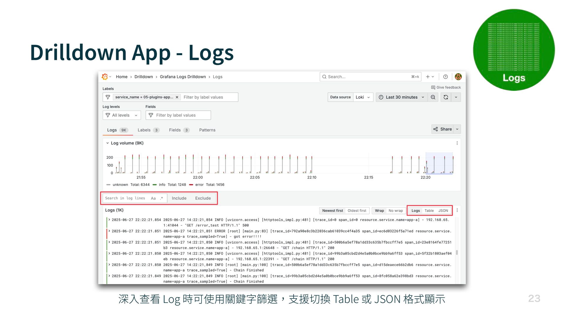 14. Drilldown App - Logs  深 入 查看 Log 時可使