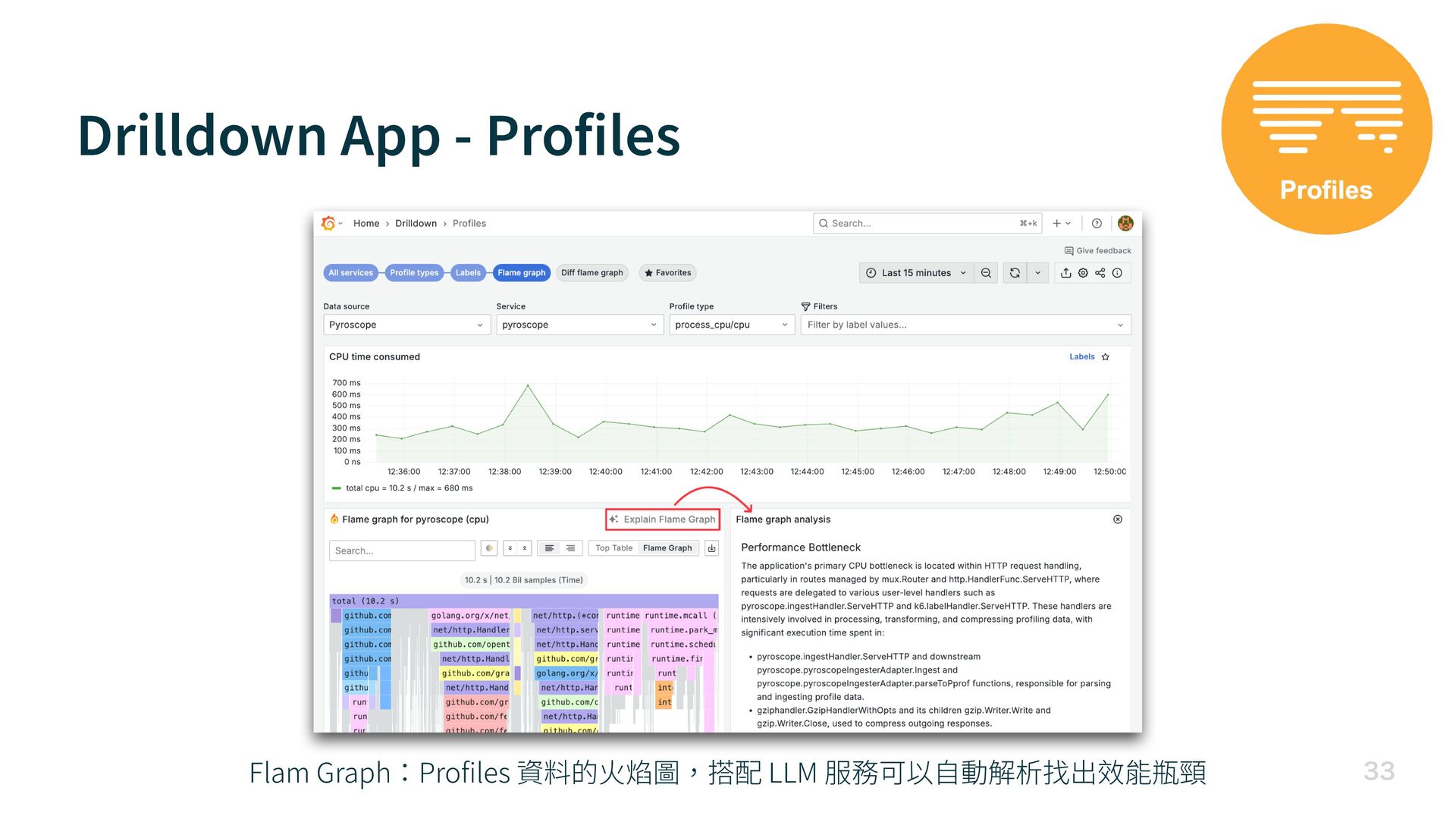 les 資料的 火 焰圖,搭配 LLM 服務可以 自 動解析找出效能瓶頸