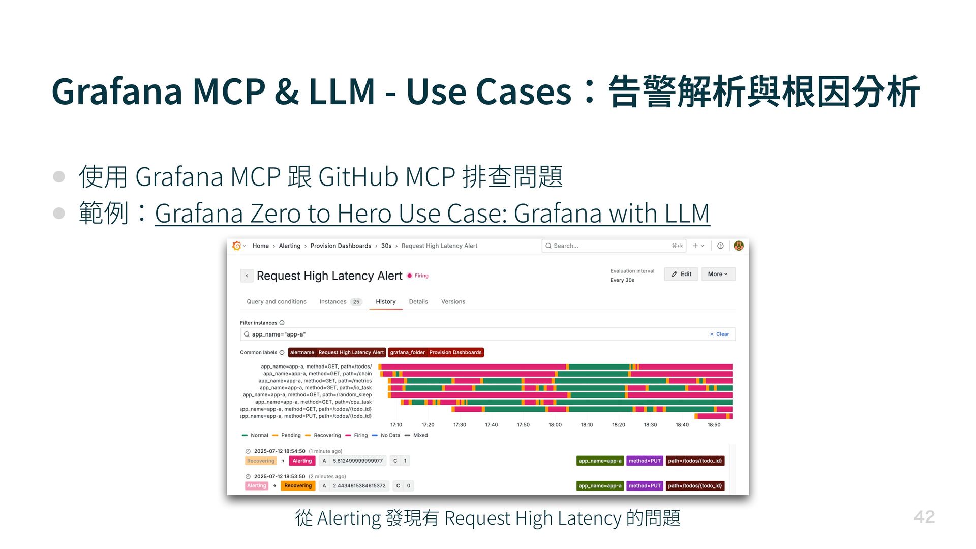 25. Grafana MCP & LLM - Use Cases:告警解析與根因分析  • 使