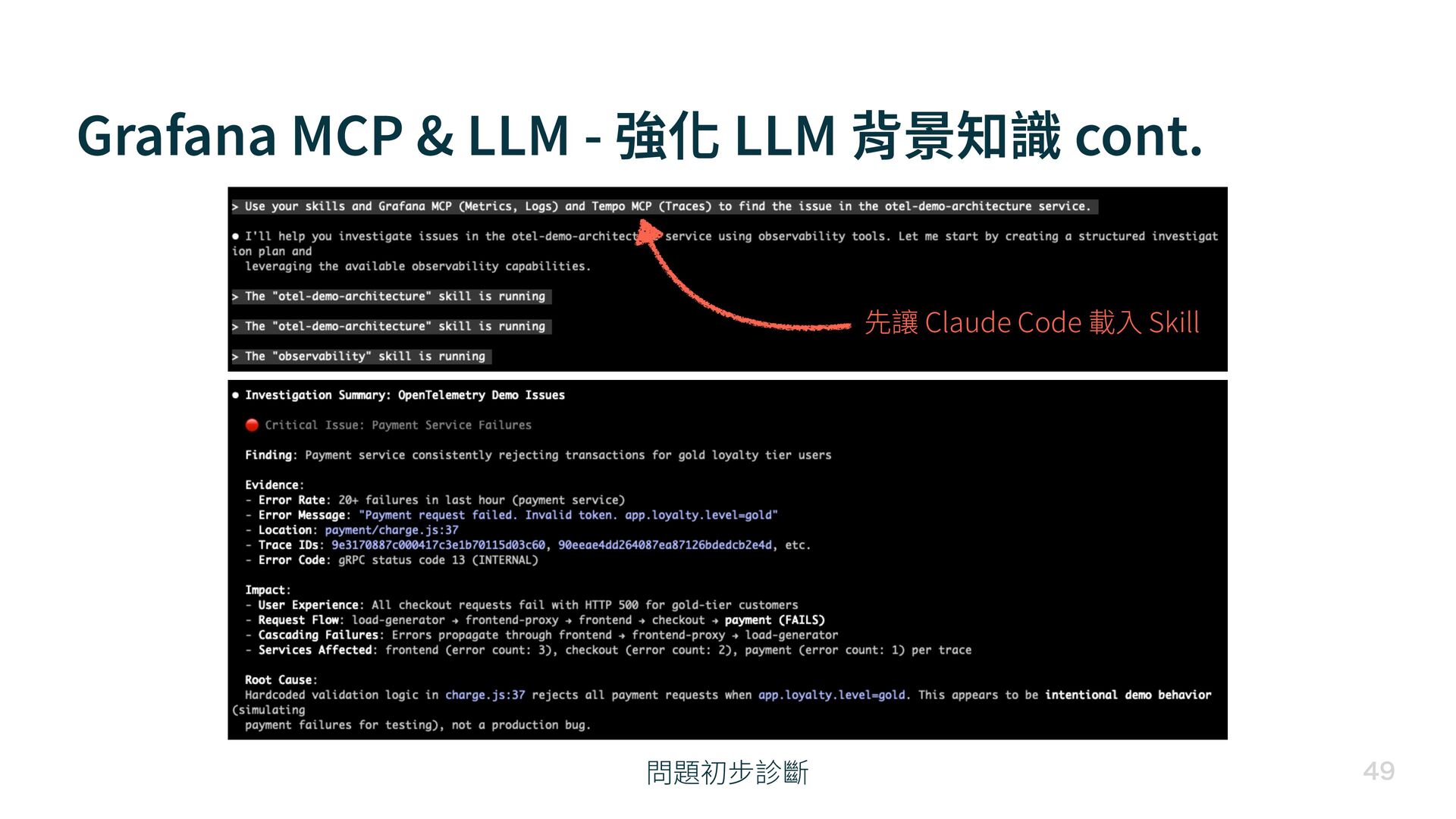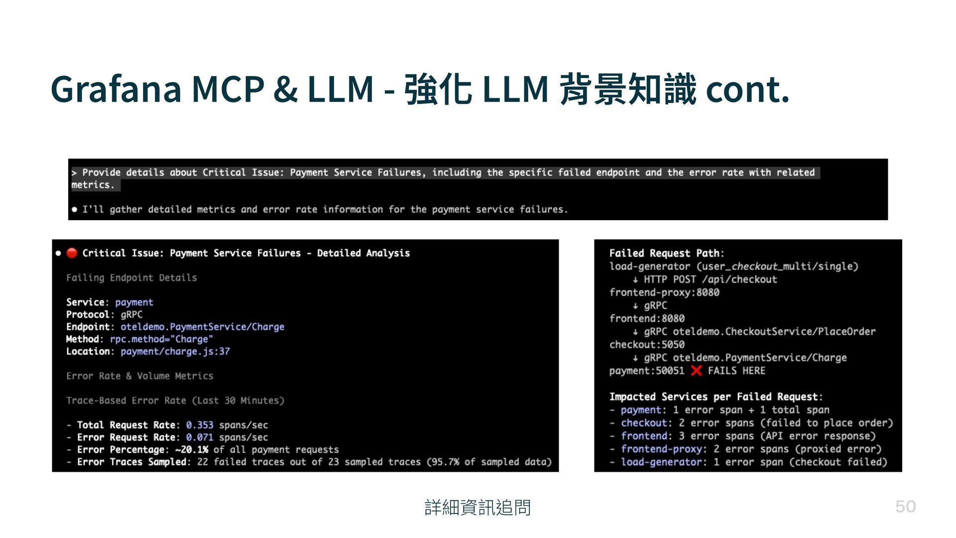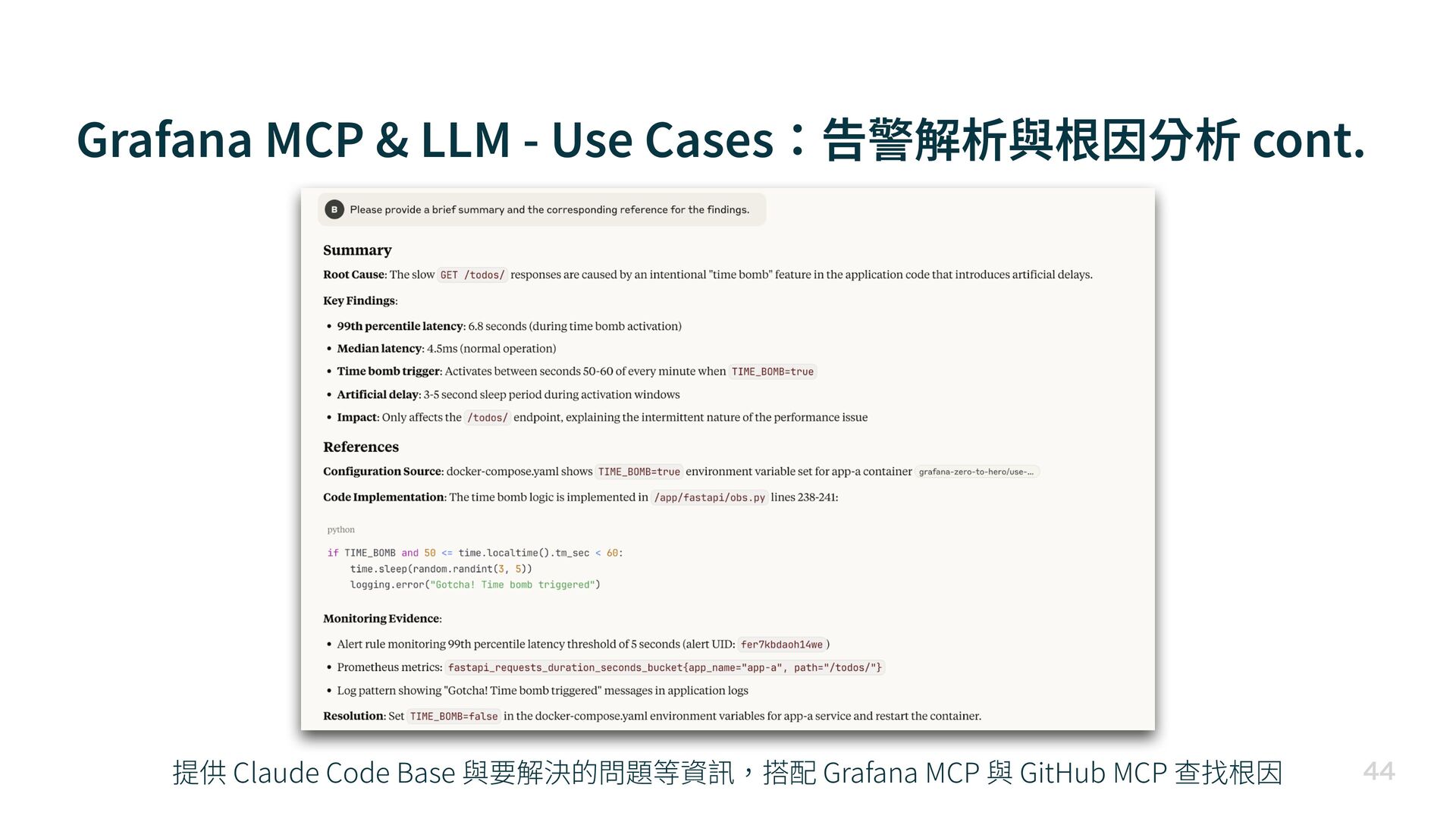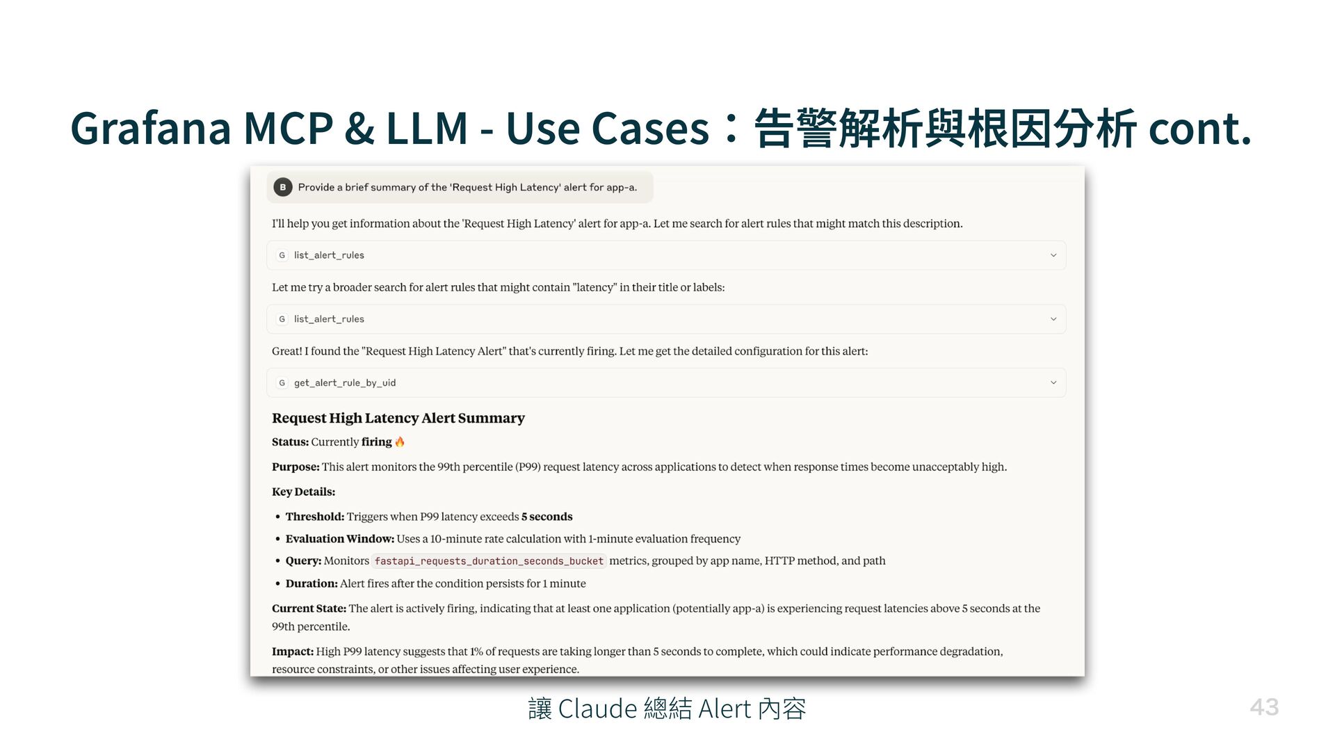 26. Grafana MCP & LLM - Use Cases:告警解析與根因分析 cont.  提供