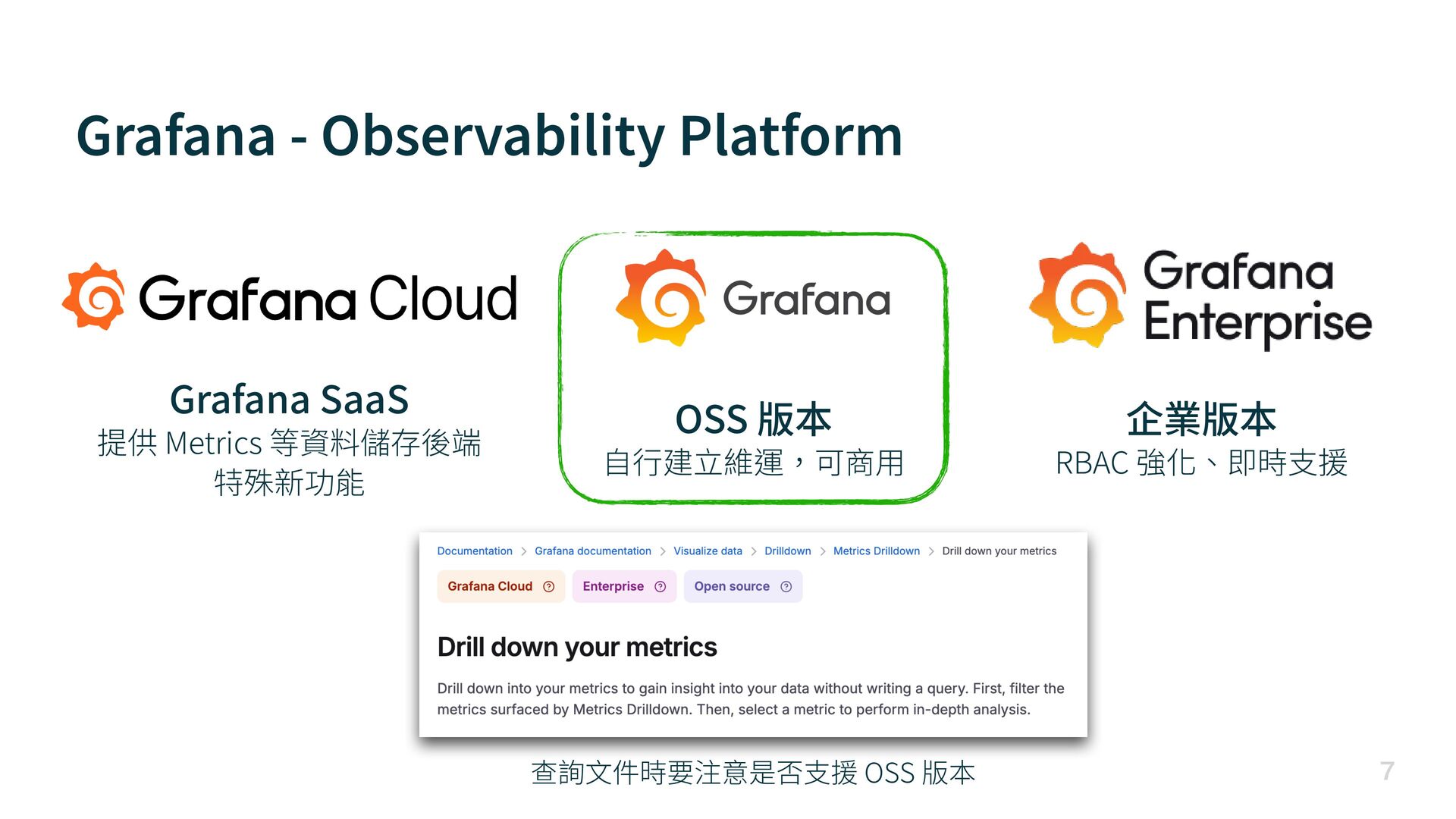 3. Grafana - Observability Platform  Grafana SaaS 提供 Metrics 等資料儲存後端