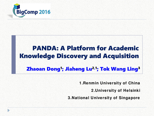 and K. E. Maarry, “Design patterns for hybrid algorithmic crowdsourcing workflows,” in CBI, 2014, pp. 1–8. • N. Luz, N. Silva, and P. Novais, “A survey of task-oriented crowdsourcing,” Artificial Intelligence Review, pp. 1–27, 2014. • N. Luz, N. Silva, and P. Novais, “Generating human-computer microtask workflows from domain ontologies,” in Human-Computer Interaction. Theories, Methods, and Tools. Springer, 2014, pp. 98–109. • E. Kamar, S. Hacker, and E. Horvitz, “Combining human and machine intelligence in large-scale crowdsourcing” in AAMAS, 2012, pp.467-474. • S. K. Kondreddi, P. Triantafillou, and G. Weikum, “Combining information extraction and human computing for crowdsourced knowledge acquisition,” in ICDE, 2014, pp. 988–999. • There are no related work on academic knowledge discovery and acquisition using crowdsourcing methods.