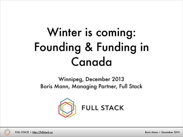 Science, University of Victoria • Co-founded first commercial Drupal company, Bryght • Co-founded first Canadian accelerator, Bootup Labs • Future of the web, open source / open data, software eating the world, startup ecosystems Boris Mann • December 2013