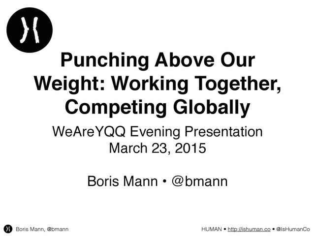 Competing globally == being global • Global == online • There are no barriers • How does a geographic community work together to raise their profile online?