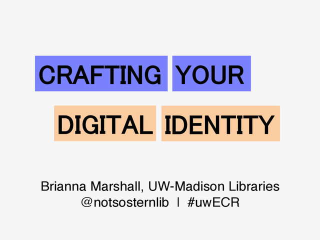- even just briefly! - rather than forego them entirely • Expectations and best practices are often field-specific • I use my own web presences as examples frequently – I believe in the power of visuals and this allows me to be the guinea pig – It’s just what I know (and certainly not the only way to go)