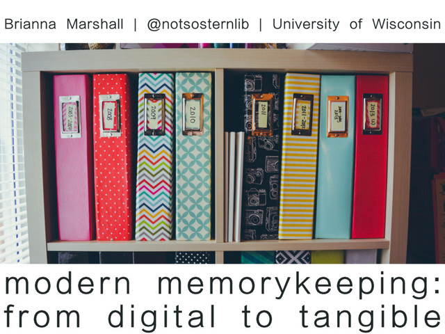 through photos but also ephemera • Standard components: 12x12 album, plastic pockets, card inserts, plus additional extras • Physical or digital options • Fun, active community http://beckyhiggins.com/project-life/