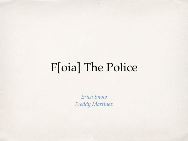 Deadlines and what missing them means ✤ Lawsuits & Attorney’s Fees ✤ Fee Waivers: Always optional under CPRA to charge fees. Under FOIA, certain categories are automatically entitled to fee waivers. ✤ Privacy: Your own versus anyone else’s. You should totally get your FBI file. ✤ Caselaw: Plenty of free resources. Leagle is a good one. Google is too. ✤ Jurisdiction: FOIA is Federal, look to State laws for State, County, City, etc. Some cities, like San Francisco, have their own Sunshine Ordinances. ✤ Bottom line: Study the law.