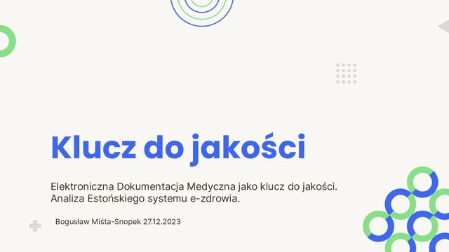 dla ujednolicenia dokumentacji medycznej • Zainicjowanie kampanii informacyjnej dla pacjentów i personelu medycznego o korzyściach z cyfrowej dokumentacji zdrowotnej • Zapewnienie szkoleń dla pracowników ochrony zdrowia w celu poprawy obsługi i wykorzystania systemu EHR • Inwestycja w infrastrukturę IT w celu zapewnienia bezpieczeństwa i ochrony danych zdrowotnych . 23 Zachęta do działania • Zwracam się z apelem do decydentów systemu zdrowia o wsparcie w implementacji systemu EHR na wzór Estoński, który jest kluczem do skuteczniejszej i tańszej opieki zdrowotnej. • Proszę instytucje publiczne oraz prywatne o inwestycje w technologie cyfrowe, które przyniosą korzyści zarówno pacjentom, jak i systemowi zdrowia.