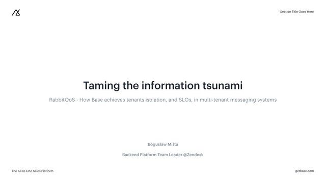 the information tsunami RabbitQoS - How Base achieves tenants isolation, and SLOs, in multi-tenant messaging systems Bogusław Miśta Backend Platform Team Leader @Zendesk