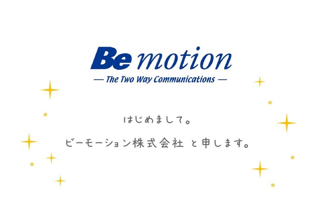 ビーモーション株式会社 はじめまして。 ビーモーション株式会社 と申します。 * * * * *
