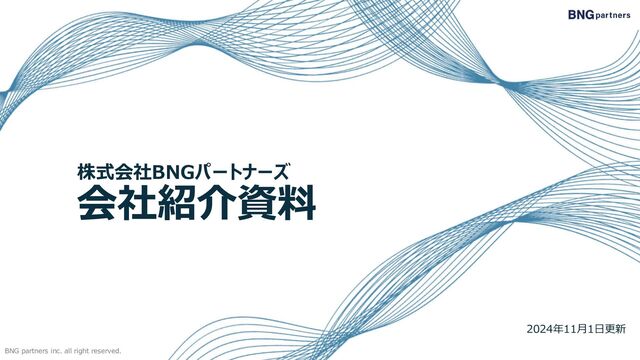 電話番号 設立 代表取締役 社員数 株式会社 BNGパートナーズ 〒102-0076 東京都千代田区五番町4-5 五番町コスモビル3階 03-3556-3431 2009年9月 蔵元 二郎 40名 資本金 1,000万 2009年 2011年 2013年 2015年 2017年 創業 エグゼクティブ人材サーチサービス開始 累計ご登録者10,000人突破 お取引企業数1,000社突破 プライバシーマーク取得 累計ご登録者20,000人突破 タレントシェアリング事業開始 2020年 累計ご登録者30,000人突破 お取引企業数3,000社突破 2021年 「ONBO」サービス開始 ※現在は新規受付を停止しています 2024年 お取引企業数5,000社突破 累計ご登録者50,000人突破 GONBO事業開始 会社沿革 ※2024年11月現在