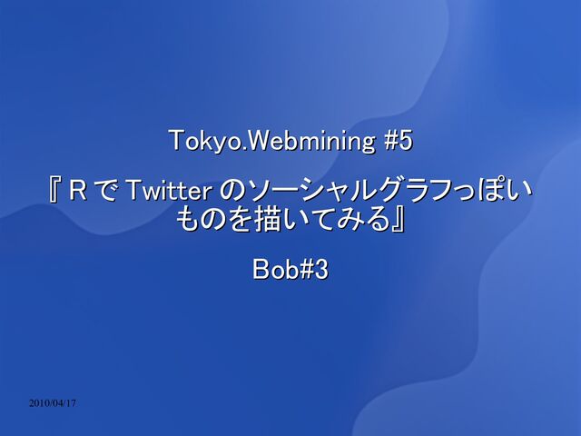 2010/04/17 Tokyo.Webmining #5 Tokyo.Webmining #5 『 『 R R で