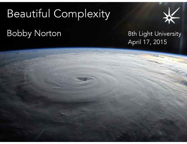 The presentation is done in a terse Lessig-style: Read the accompanying blog post at http://bobbynorton.com/posts/beautiful-complexity/ for more details.