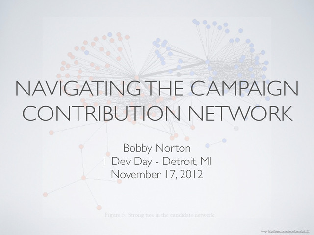 scientists - ANN coming soon via Twitter • Finish loading FEC data and continue network analysis • Visualize the network • Compare results to other implementations to validate the original claim