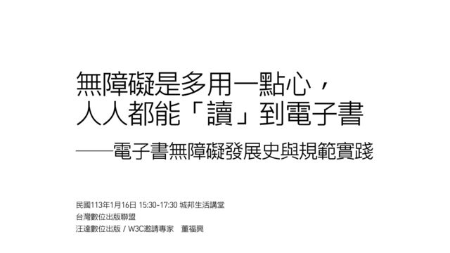 民國113年1月16日 15:30-17:30 城邦生活講堂