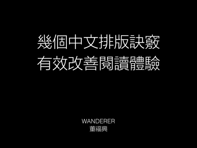 2016MOPCON@高雄 中文排版從桌上排版到網頁,受到西方文字以及日文排版的影響相當深。W3C 之前發布中文排版需求,試著從傳統排版時代找出中文的排版規則,並且試著在技術上完善中文排版,但要大幅改變,還是需要所有內容相關的開發者、設計師一起努力。這場演講希望分享幾個小訣竅,從文字到排版,從規則到技術,希望能夠讓更多人投入改善中文排版的表現,以一些小小的改變,大大地提升使用者體驗。