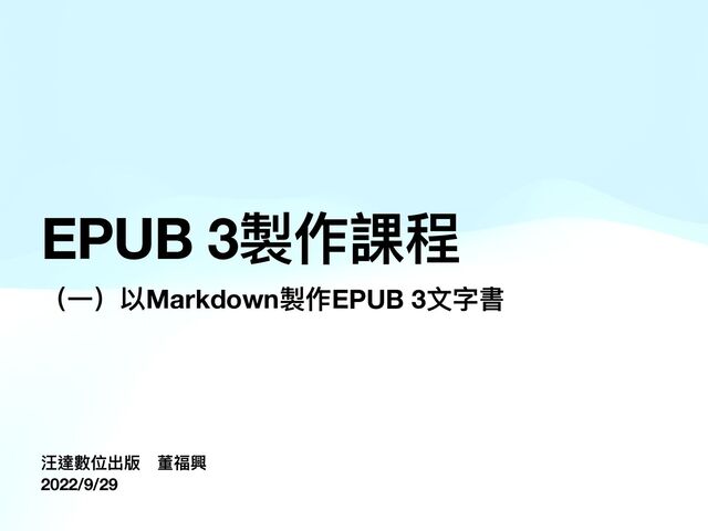 汪達數位出版 董福興 2022/9/29 EPUB 3製作課程 ( 一 )以Markdown製作EPUB 3 文 字書