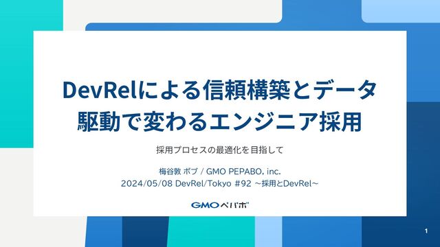 発表イベント:DevRel/Tokyo #92 〜採用とDevRel〜 テーマ:「採用とDevRel」 2024/05/08(水) の登壇資料(20分)です。 https://devrel.connpass.com/event/315364/