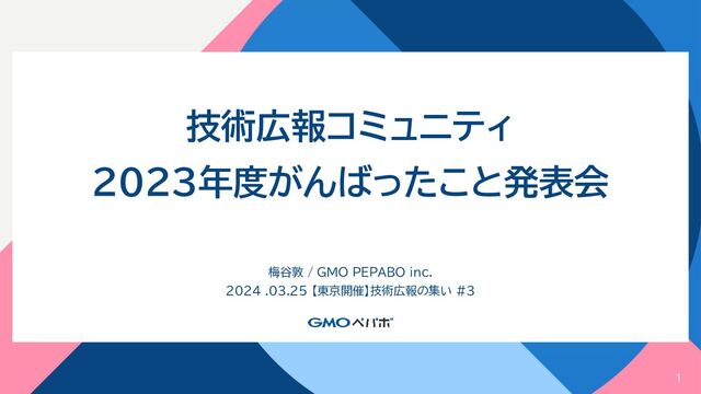 発表イベント: 【東京開催】技術広報の集い #3 主催 : 技術広報コミュニティ 2024/03/25(月) の登壇資料 LT(3分)です。 https://techpr.connpass.com/event/310531/