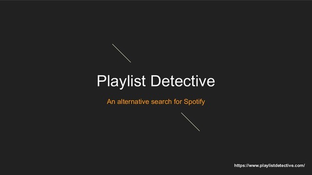 Playlist Detective An alternative search for Spotify https://www.playlistdetective.com/