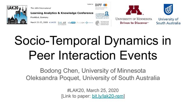 of factors. • The analysis of peer interaction can benefit from focusing on relational events rather than relational states. • Social dynamics and temporal dynamics in peer interaction networks are intertwined.