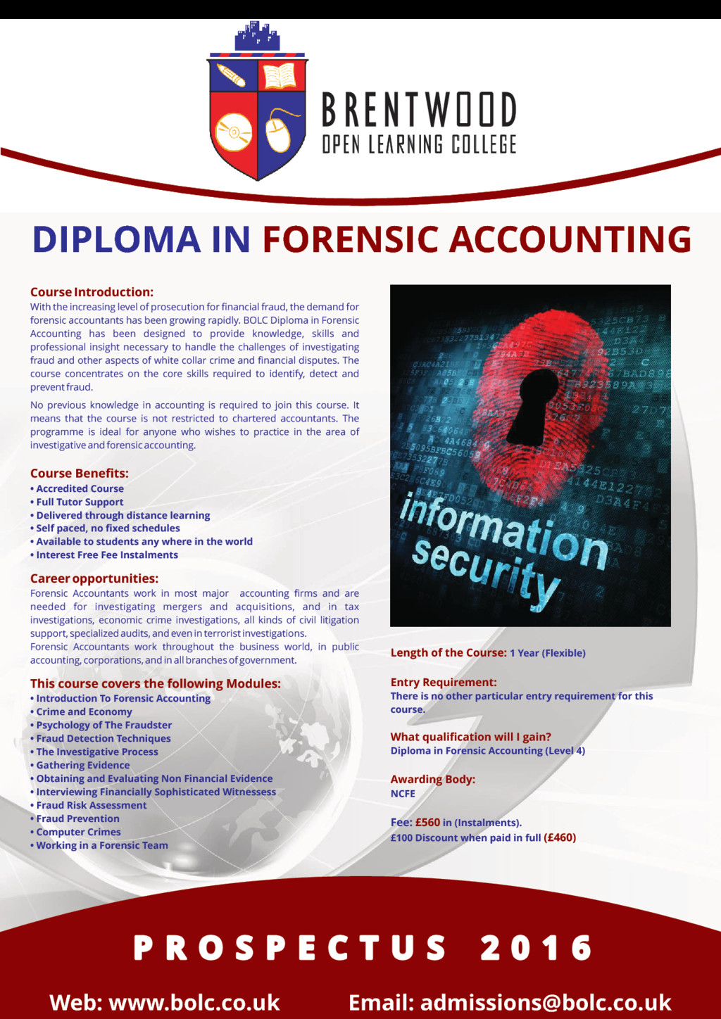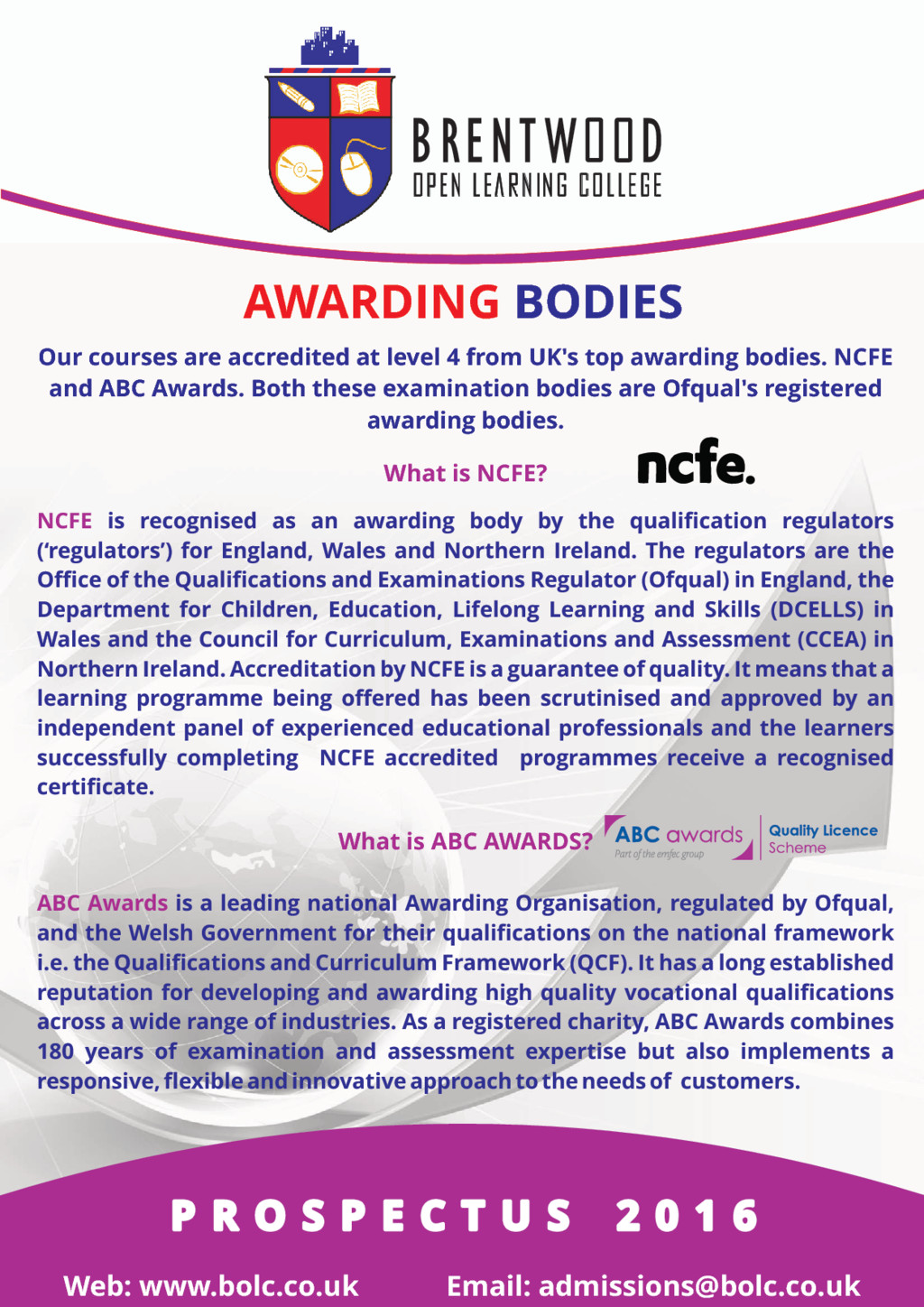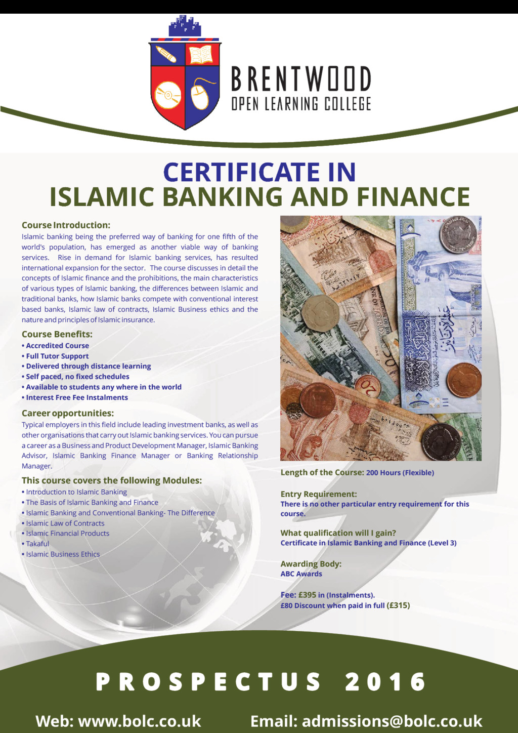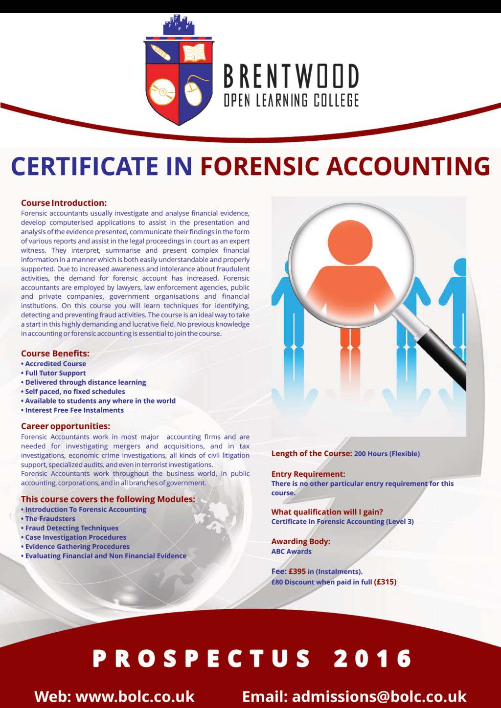 Project management is about the application of methods, knowledge, skills and processes to achieve the project objectives. Appropriate project management skills assure the successful completion of the project. This course explains what the project management is all about and how to approach it successfully. The course is suitable for you whether you are in any industry; oil and gas, renewable energy, engineering, built environment, information technology, construction, knowledge management, marketing, public sector, pharmaceutical, health care, military, education, entertainment and creative industries. Effective project management leads you to; • a greater possibility of achieving the required results; • satisfies the differing interests of the stakeholders of the project; • ensures the proficient and effective use of available resources Course Benefits: • Accredited Course • Full Tutor Support • Delivered through distance learning • Self paced, no fixed schedules • Available to students any where in the world • Interest Free Fee Instalments Career opportunities: You could work as a project manager in most industries, including construction, IT, marketing, manufacturing, Aerospace and Defense, information Technology, automation, Systems Manufacturing, Education and training, financial services and the public sector. This course covers the following Modules: • Introduction To Project Management • Planning A Project • Project Scope Management • Project Time Management • Managing Project Quality And Risk • Managing Communication on a Project • Managing Project Globally Length of the Course: 200 Hours (Flexible) Entry Requirement: There is no other particular entry requirement for this course. What qualification will I gain? Certificate in Project Management (Level 3) Awarding Body: ABC Awards Fee: in (Instalments). £395 £75 Discount when paid in full (£315) P R O S P E C T U S 2 0 1 6 P R O S P E C T U S 2 0 1 6 P R O S P E C T U S 2 0 1 6
