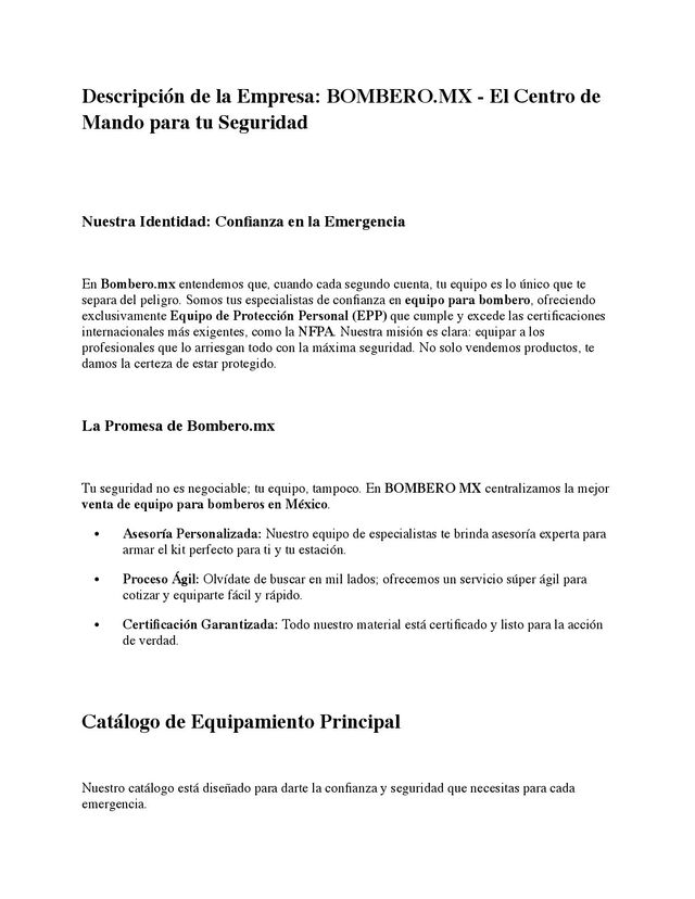 Con gusto, aquí tienes una descripción amplia y detallada para la información de Bombero.mx, lista para ser utilizada en materiales de marketing o documentación corporativa.