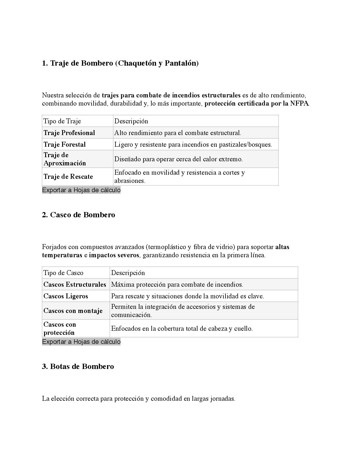1. Protección Térmica y Estructural (Trajes de Bombero)