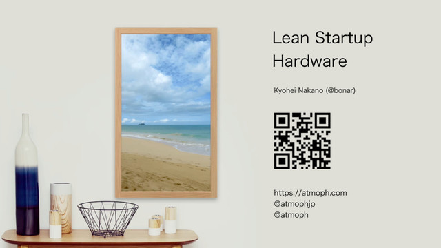 私達は Atmoph Window というIoT製品を開発していますが、京都の小さなスタートアップがどの様にして資金を集め(クラウドファンディング)、ハードウェア/ソフトウェア/ネットワークサービス(AWS)を少ないリソースで開発しているかについてご紹介させて頂来ます。