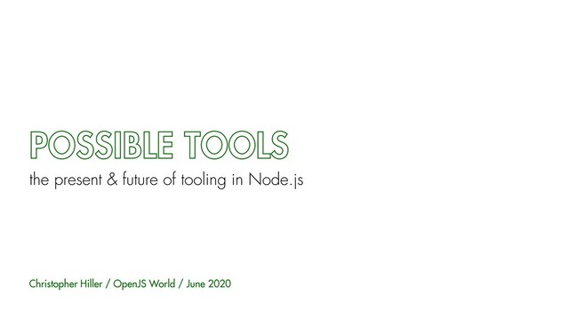 Chris leads the Node.js Tooling Group--a team of commiserating tooling authors--who are sculpting Node.js into a superior platform for building tools. In this talk, Chris will highlight the Tooling Group's recent successes, showcase its current initiatives, and visualize the future of possible tools written in Node.js.