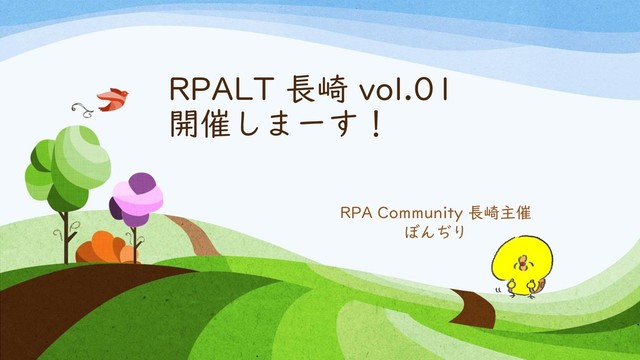 これから… • 定期的にRPALT 長崎を開催していきたい! • ツール毎の技術勉強会もしたい! • 長崎のRPA仲間を増やしたい!