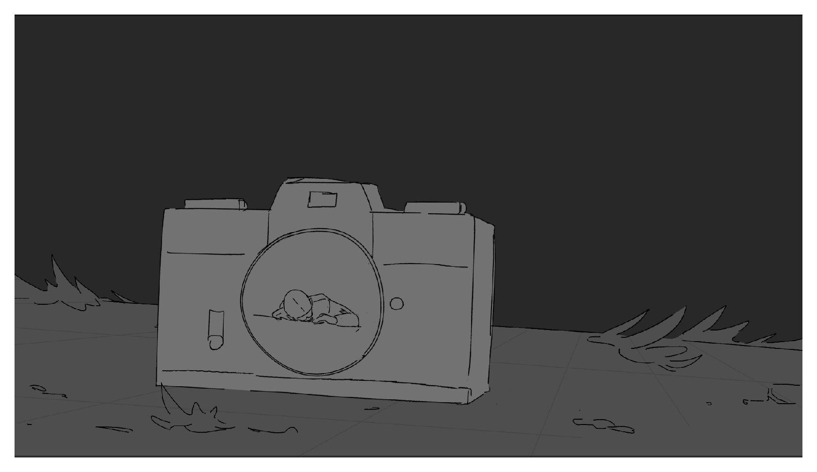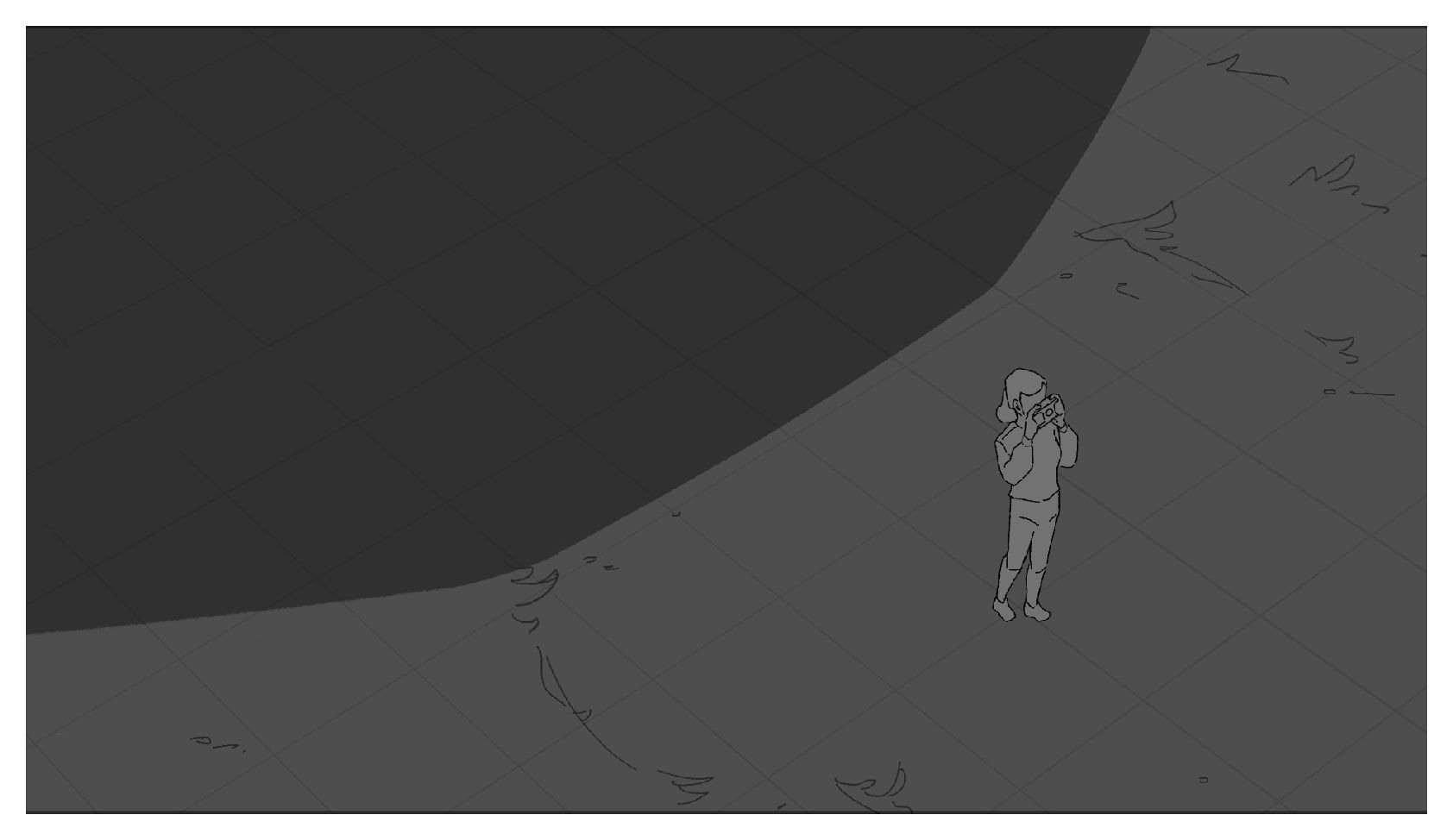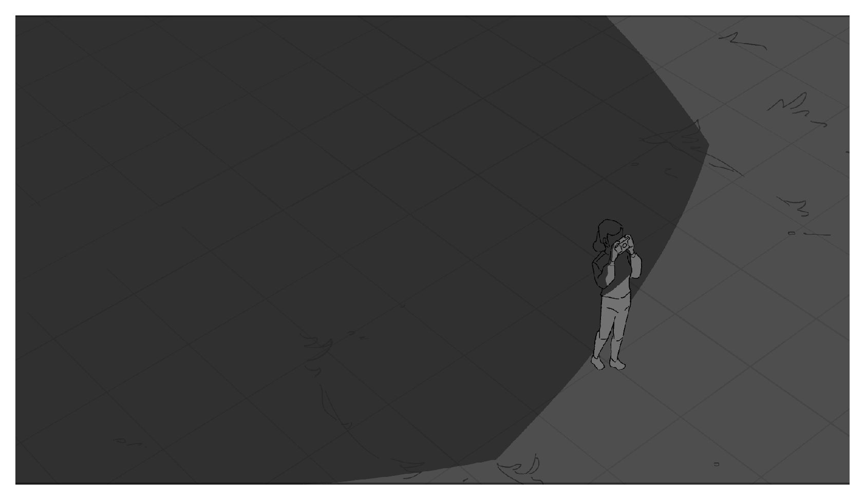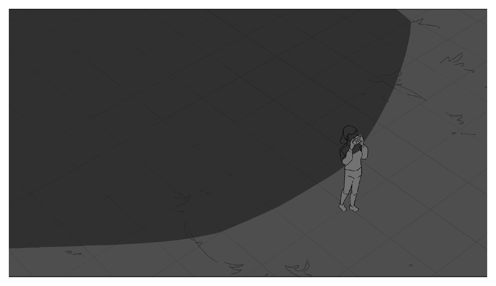 The scientist falls and drops their camera, they are then transported to a different reality as the camera hits the ground. They are curious as to their new yet familiar surroundings and notice a strange astrological phenomenon. While taking pictures of the sky, they encounter the eldritch creature that has appeared in each reality and attempt to take a picture of it.