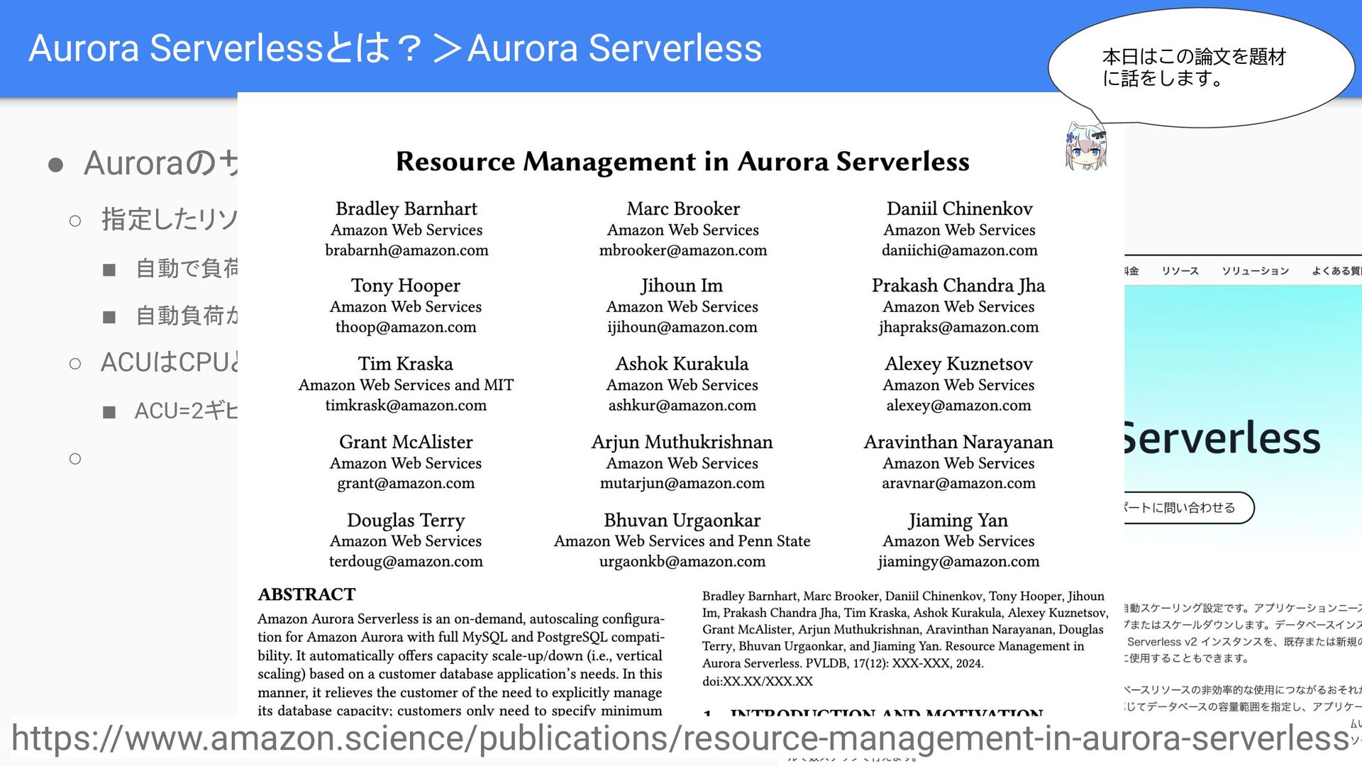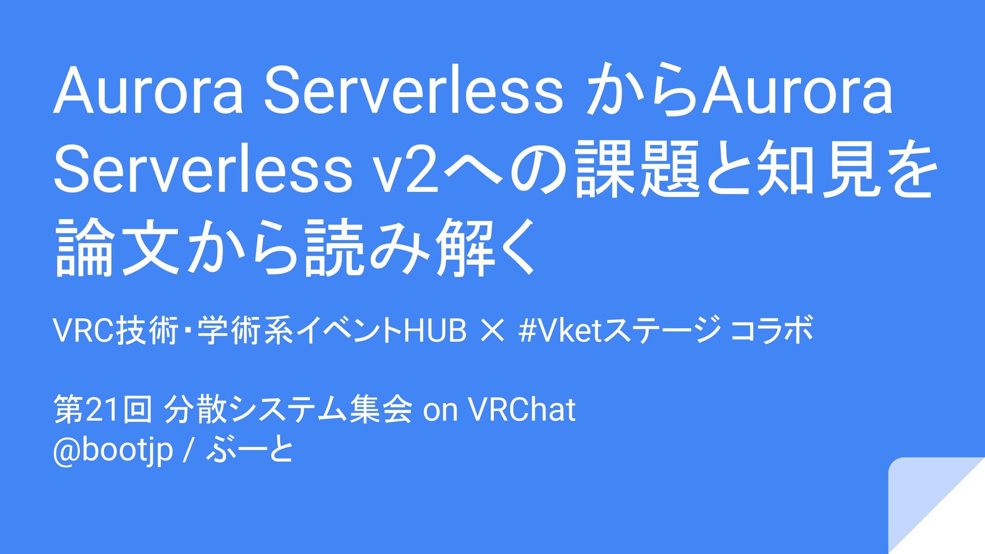 Aurora Serverless からAurora Serverless v2への課題と知見を 論文から読み解く VRC技術・学術系イベントHUB ✕ #Vketステージ コラボ