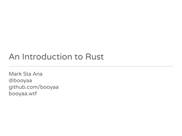 An Introduction to Rust Mark Sta Ana @booyaa github.com/booyaa booyaa.wtf