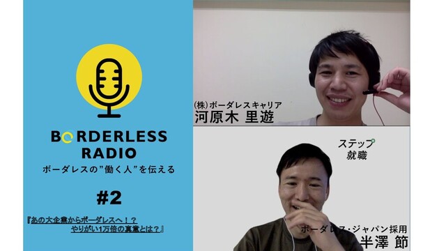 ボーダレスグループの"働く人"を伝えるBORDERLESS RADIO(ボーダレスラジオ)。 第二回目はIKEA・Amazonから昨年ボーダレスキャリアへ中途入社したラギーさん(河原木 里遊)をゲストにお招きし、転職を決めた経緯/入社後の日々についてお聞きしました。パーソナリティーはボーダレス・ジャパン採用人事の半澤。 ラギーさんのプロフィールはこちら →https://www.borderless-japan.com/member/kawaragi-riyu/