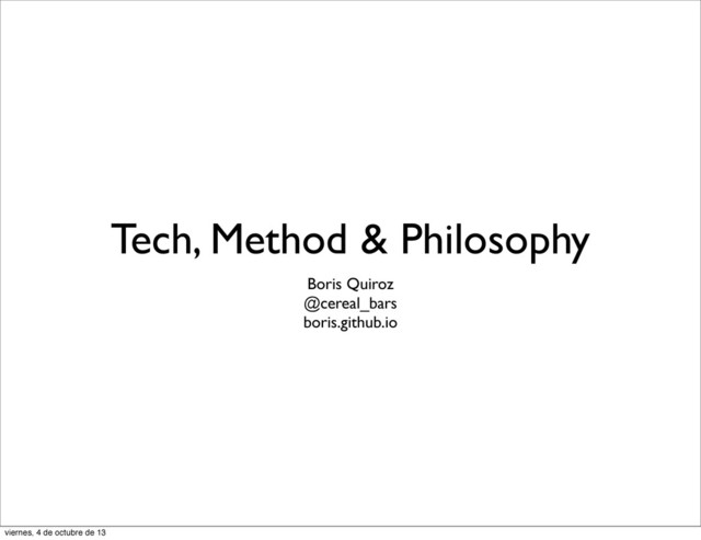twitter.com/cereal_bars casi siempre escribo tonteras github.com/boris algunas veces escribo código boris.github.io casi nunca escribo cosas coherentes. viernes, 4 de octubre de 13