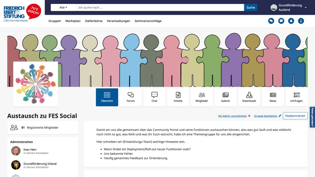 Einblicke in die Entwicklung des Community Portal "fes-social". Ein Social Network mit TYPO3 als Basis.