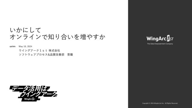 ウイングアーク1st 株式会社 ソフトウェアプロセス&品質改善部 菩薩 May 10, 2024 いかにして オンラインで知り合いを増やすか