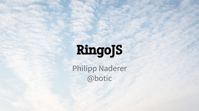publish packages at packages.ringojs.org • rp is the command line tool ◦ download, install & publish packages ◦ packages are downloaded into a packages directory ◦ to get help: rp help [install | publish | ...]