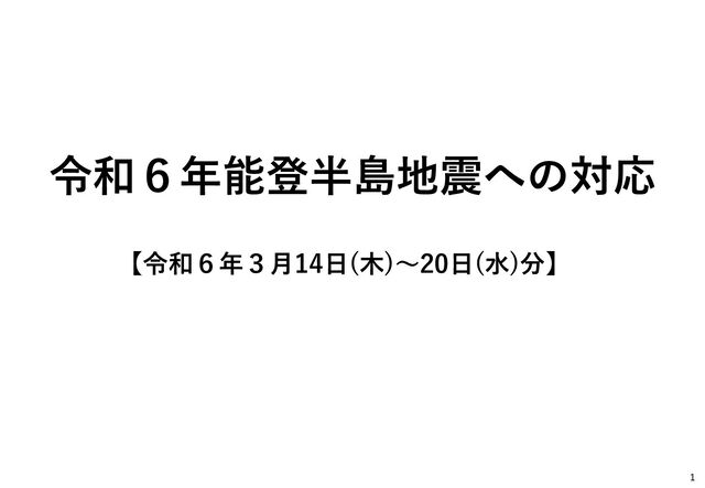 102人 増減なし 負傷者 1,188人 増減なし 516人 増減なし 安否不明者 5人 増減なし 5人 増減なし 住家被害 (全壊・半壊等) 74,099棟 (-6,530) 14,777棟 (+7) 避難所 182箇所 (-6) 53箇所 増減なし 避難者 4,563人 (-238) 1,827人 (-30) 停電 概ね復旧 ー 約330戸※2 ー 断水 約11,460戸 (-3,710) 約3,870戸 通水戸数444戸、復旧戸数6,646戸※3 (-970) ※1 輪島市の数値は石川県の内数。避難所数、避難者数は1.5次避難所及び2次避難所を除く 2 ※2 北麓電力HP(3月19日12時現在) ※3 輪島市ホームページより(3月14日午後5時現在) (2)復旧・復興状況等(石川県発表 3月19日14時 時点 ※罹災証明書は輪島市本部員会議資料 3月18日時点) 石川県 増減(3月12日比) 輪島市 増減(3月12日比) 応急仮設住宅 着工戸数 4,486戸 (+141) 1,979戸 (+39) 罹災証明書 発行件数 非公表 - 6,960件 (+992) 【国等の体制】 ・ 国 :令和6年能登半島地震復旧・復興支援本部設置(2月1日) 道路などの迅速な復旧を目的とした能登復興事務所設置(国土交通省)(2月16日) ・ 石川県:石川県令和6年能登半島地震復旧・復興本部設置(2月1日)
