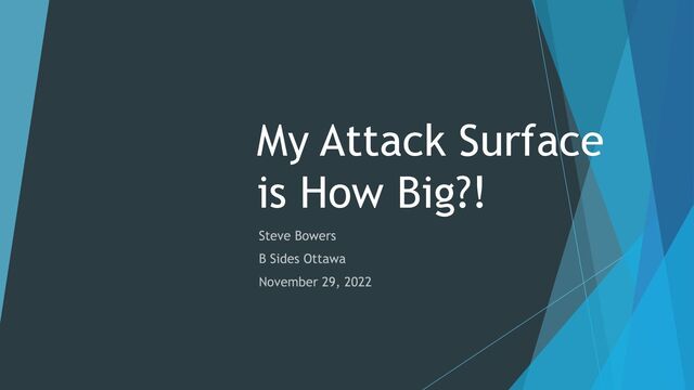 As a supplement to this presentation, we are also working on the Attack Surface Management Saga at our blog: https://blog.theblueteam.io