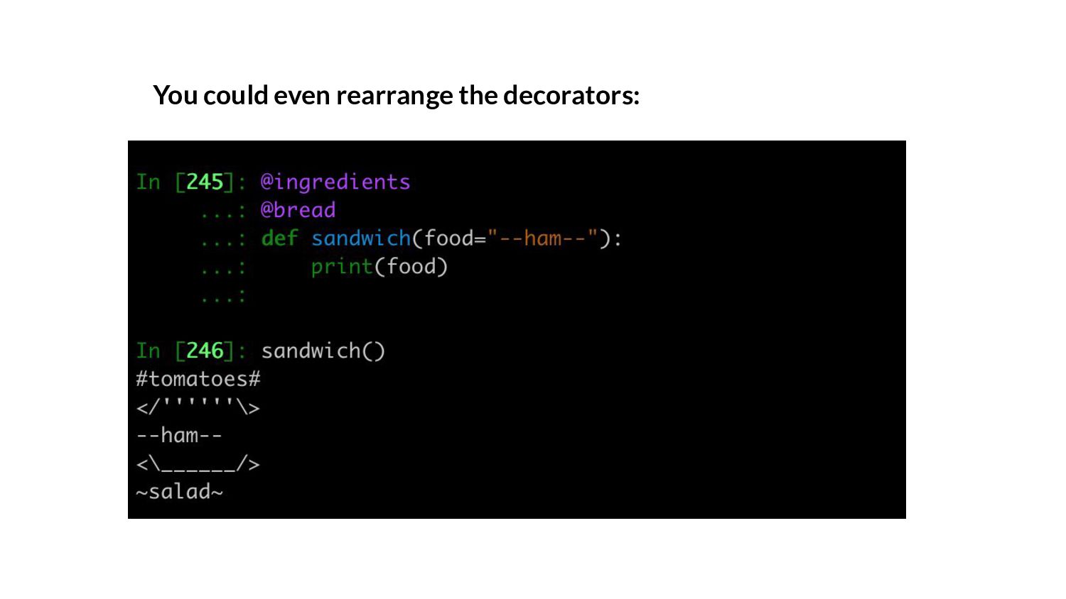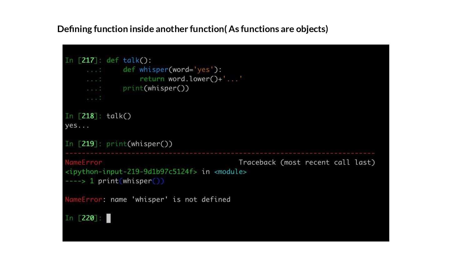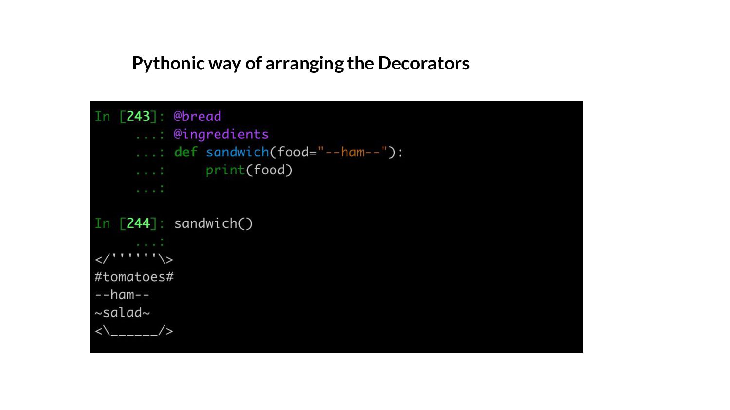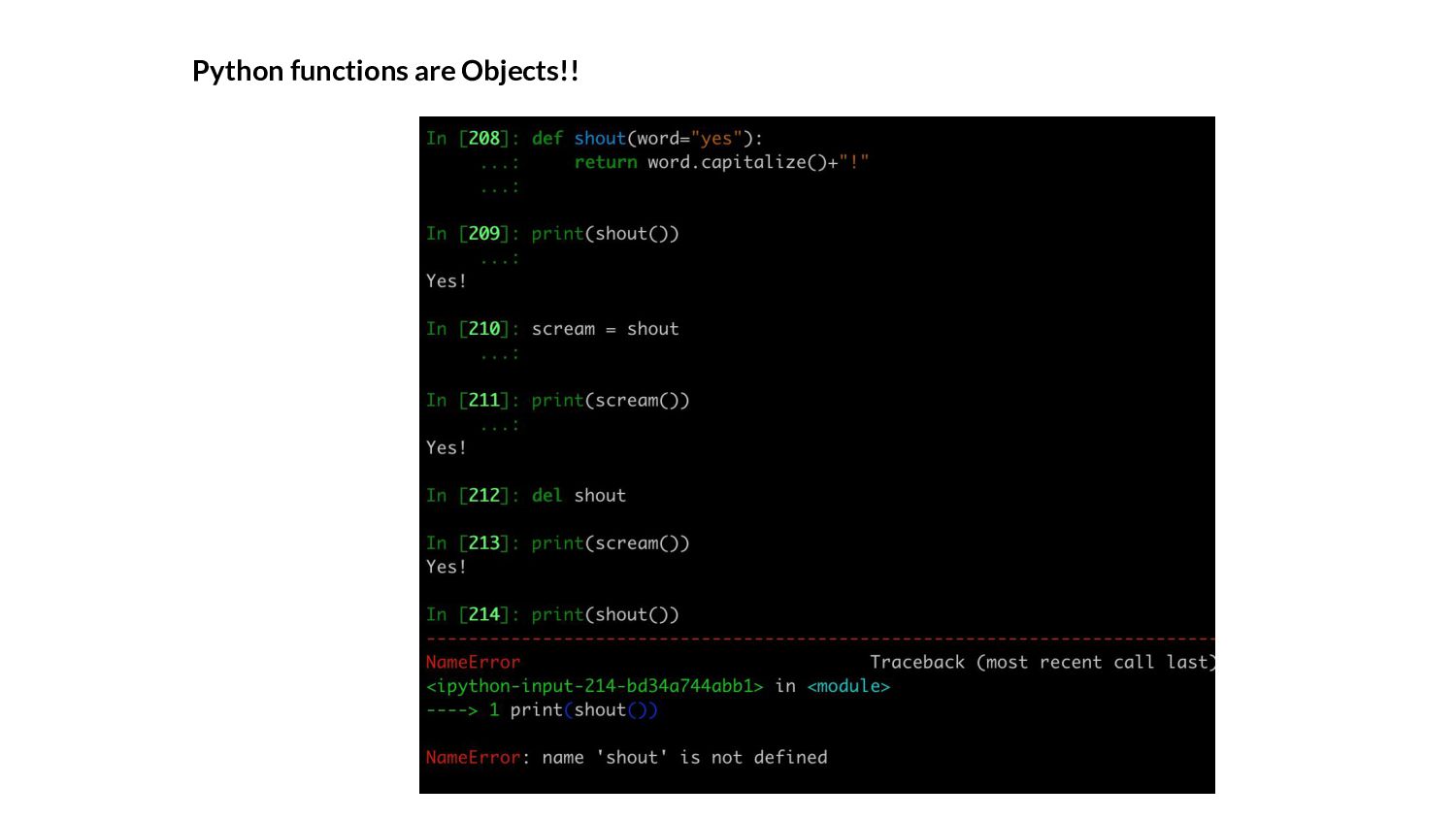 functions. They are wrappers that allow to execute code before and after the function they decorate without modifying the actual function. In python, functions are Objects. This can help you understand how decorators work. As functions are Objects, it can be assigned. As functions are Objects, we can create function inside function. As functions are Objects, we can pass function inside function As functions are Objects, we can return function inside function.