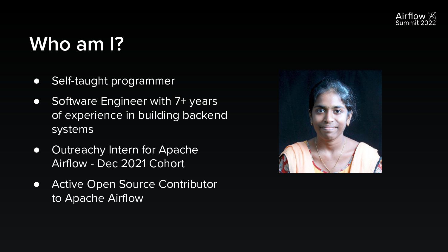 7+ years of experience in building backend systems • Outreachy Intern for Apache Airflow - Dec 2021 Cohort • Active Open Source Contributor to Apache Airflow