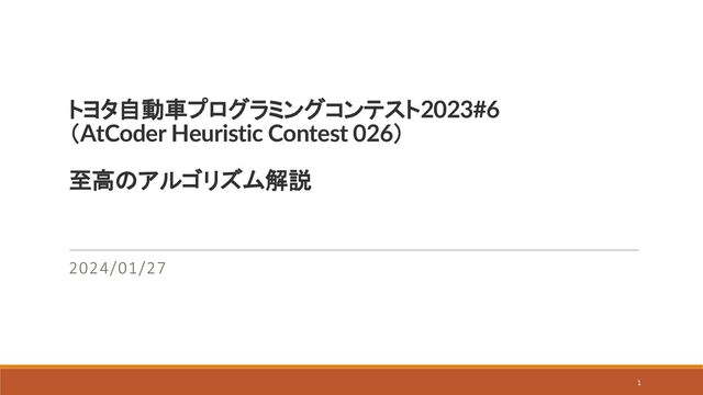 「TOYOTA AHC 至高のアルゴリズム解説会」で発表に使用したスライドです。 https://atcoder.jp/contests/TOYOTA_AHCSupremeAlgorithmExplanatoryMeeting