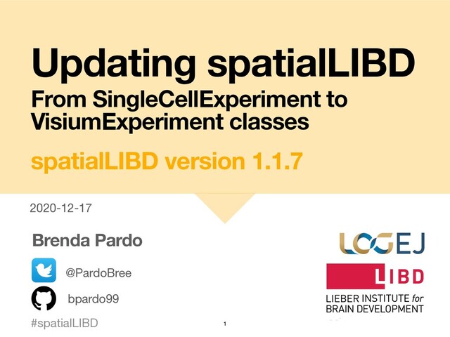 and Dario Righelli • To move spatialLIBD graphical functions to new package. • Update spatialLIBD based on the new version of the SpatialExperiment package. • Application note about spatialLIBD. Future directions of spatialLIBD 10